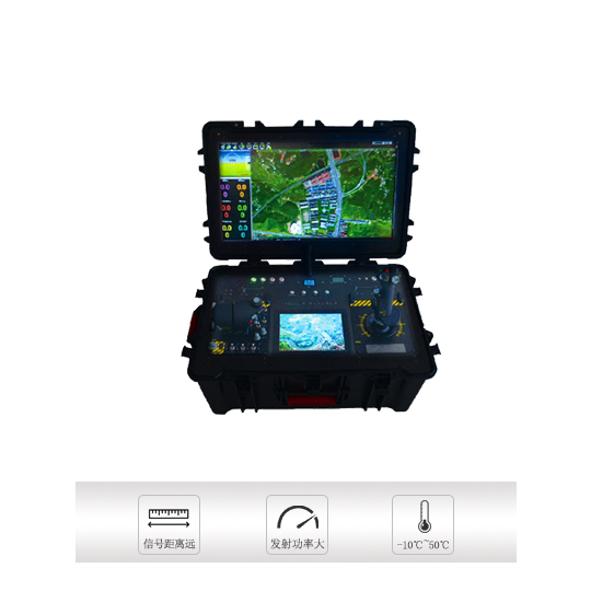 無人機地面站DMS-02型專業級仿真型地面站,采用進口軍用拉桿箱,三防設計,防護等級達到IP67。專業仿真飛行控制器,內置操縱搖桿,開蓋即使用。本地面站內置液晶屏,實時接收并顯示多種重要的飛行數據。